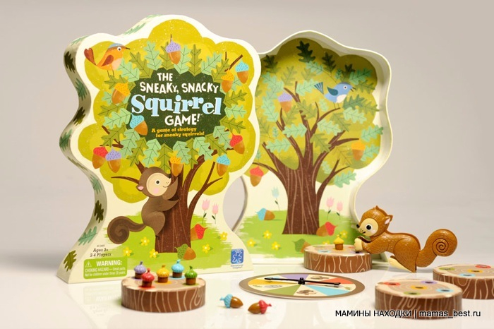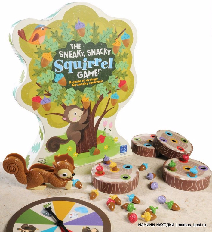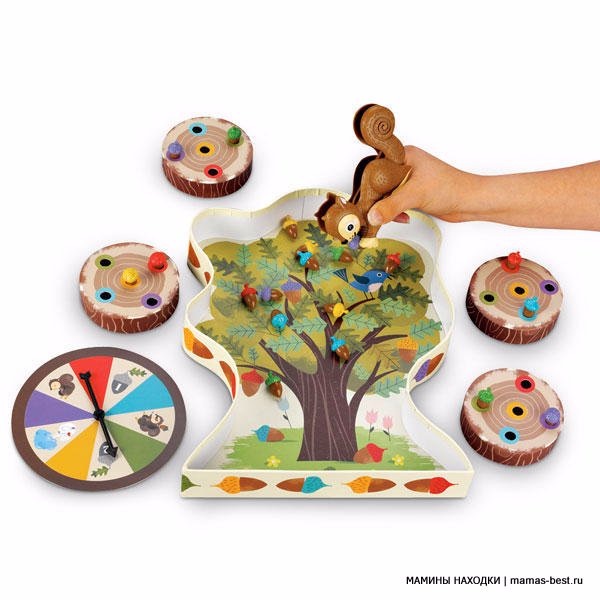 Наши проворные лесные друзья проголодались, и им нужно помочь! Крутите стрелку, доставайте желуди с помощью белки и заполняйте дырки в бревнышке. Побеждает тот, кто первым заполнил свое бревнышко.