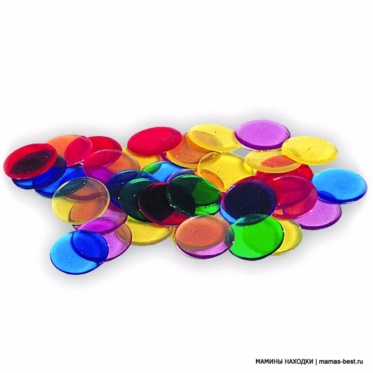 Набор из 250 прозрачных фишек для счета в 6 разных цветах. Идеально подходят для игры на световом столе.