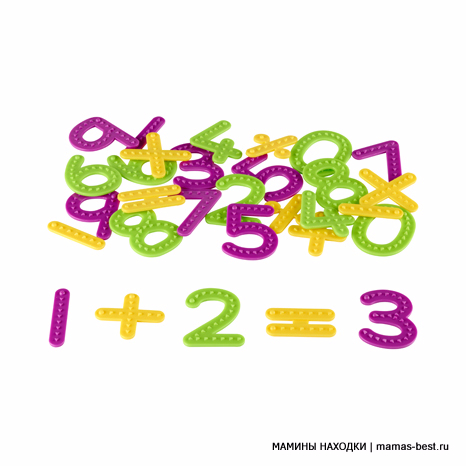 - В целях пробуждения интереса малыша к решению математических задач с самого раннего возраста набор включает также математические знаки