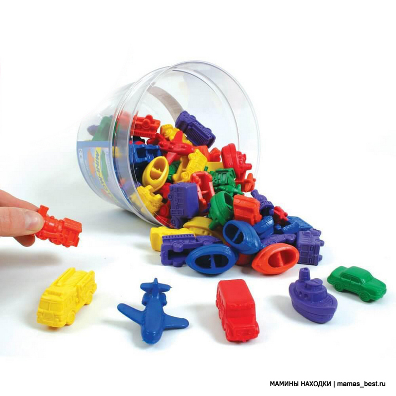 С этими замечательными фигурками воображение ребенка будет работать на полную! Разноцветные машинки, поезда, самолеты и корабли помогут маленькому исследователю научиться считать, распределять и классифицировать, устанавливать соответствия. Способствуют развитию образного мышления, дают огромный простор для фантазии и могут применяться в большом количестве разнообразных обучающих игр.