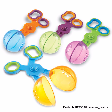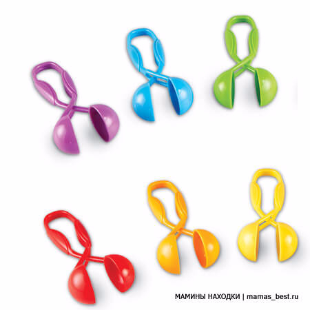 - "Пинцеты-ложки" отлично подойдут для игр с сыпучими наполнителями.