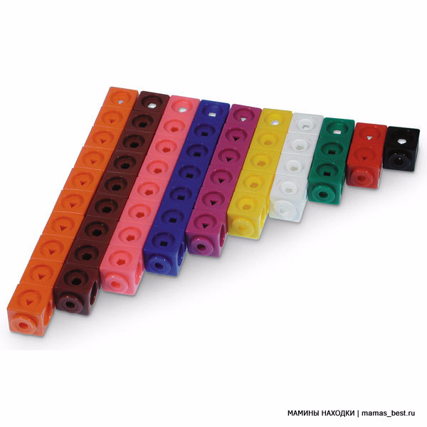 Кубики представлены в 10 цветах, размер кубика составляет 2см в длину и высоту.