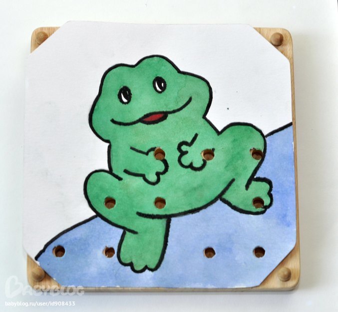 Можно дополнять рисунки рамок, закрепив карточку на планшете, можно выкладывать свои картинки, можно сортировать гвоздики по цветам и рамерам и тп