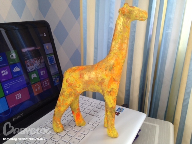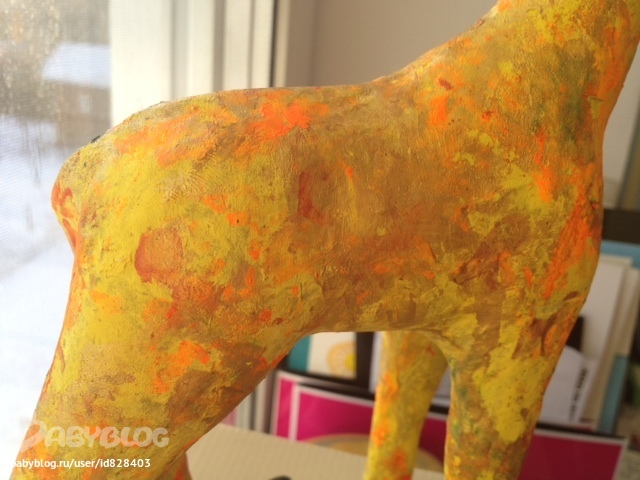 И жирафика (результат 1го занятия, желтый фон +золотая, оранжевая, красная краски):