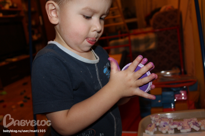 Штампики на ощупь очень приятные, тоже очень легко отмываются. И цвет чудесный - ярко фиолетовый!!!
