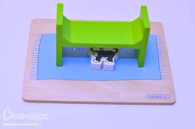 - А давай попробуем решить супер сложную задачу, будь внимателен: котика поставь внизу перед кроватью, подушку внизу под кроватью, а одеялко сверху на кровать.