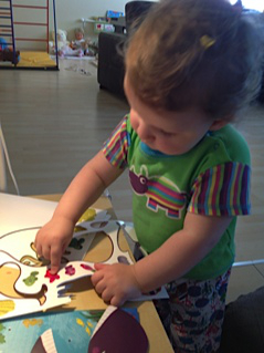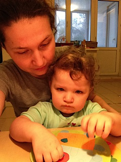 Очень давно я заглядывалась на аппликацию с кнопочками и , наконец, решилась) Надеялась, что София справится! Так оно и есть - УРА!!!!!!