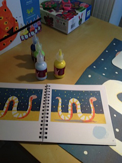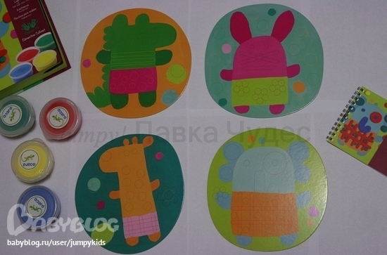 Сразу напишу, что меня поразило! КРАСКИ!!!!!! Обалденные! Консистенция почти как гуашь густая и цвета СОЧНЫЕ! Что не совсем свойственно пальчиковым краскам!