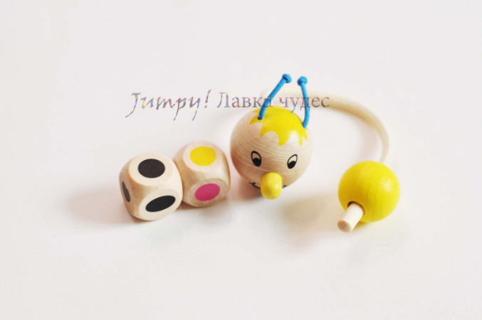 Выше мы с вами рассмотрели оптимальные варианты игры для одного игрока, если же участников больше, то просто кубики (или кубик) кидаются по очереди. Или более сложный вариант для большой компании - игрок кидает кубик, но ... нужную форму или цвет (или и то, и другое) все участники ищут вместе, кто первый найдет и покажет, то имеет право покормить свою гусеницу нужной бусиной, если же игроки одновременно нашли нужную комбинацию, то они оба кормят своих подопечных.