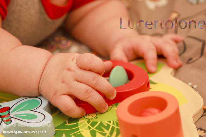 Даже если взрослому не совсем понятно, что с ним делать (как кое-кому в моей семье :), то ребёнок в этом конкретном случае разберётся сам. В то время как мягкие игрушки отчаянно вбирали пыль, а погремушки ещё толком не держались в руках, на помощь как раз и приходил этот центр.