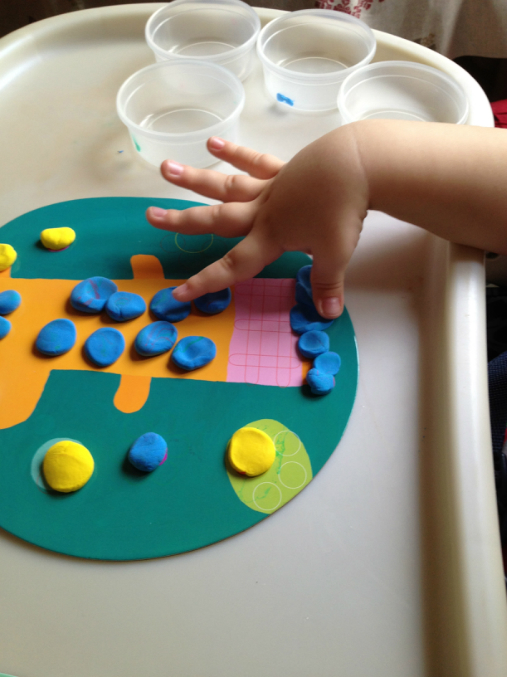 А мы тоже с этим набором с пластилином играем почти также - я леплю много кружков, а Пита их по картинке расставляет и потом пальцем делает блинчики )))))