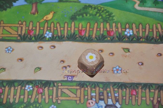 Игру начинает самый младший игрок. Он кидает кубик и ...