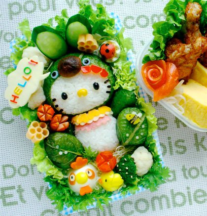 Главная фишка бэнто - особый подход к оформлению еды. Современное бэнто - настоящий пример фуд-арта. При помощи бенто вы можете превратить прием пищи в игру и без проблем накормить овощами любимое чадо. А приготовив мужу бэнто в виде машины, удочки или футбольного мяча - выразите свою любовь и заботу.