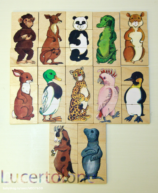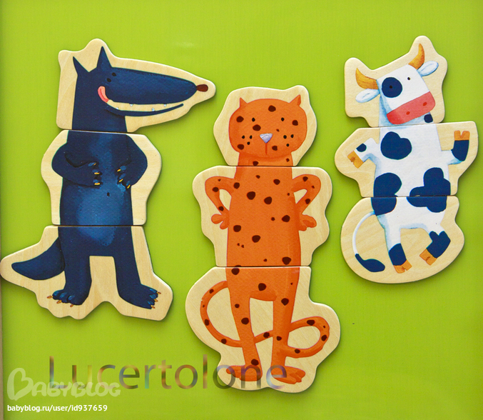 В итоге у нас появились такие наборы, в которых из трех составляющих нужно составить единое целое, в нашем случае животное.