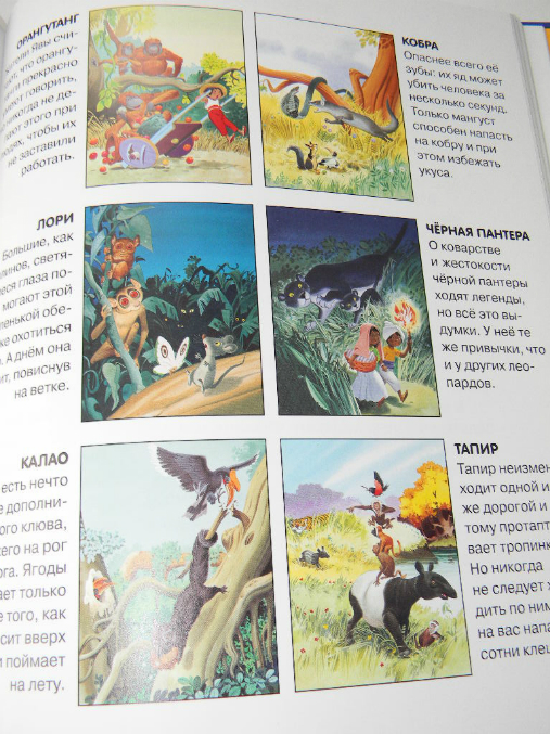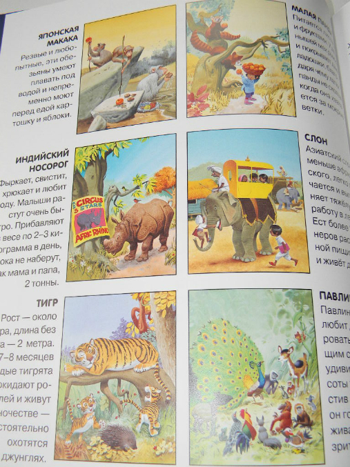 «О тех, кто живёт в Азии» (макака, панда, панда, тапир, павлин, тигр, слон, орангутанг, лори, калао, кобра, пантера)