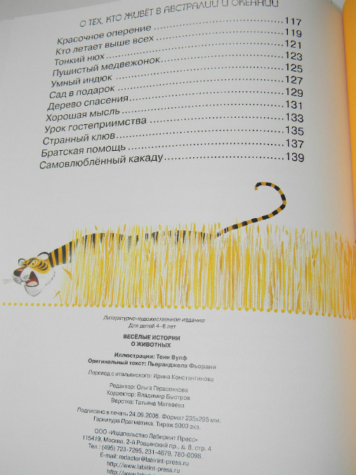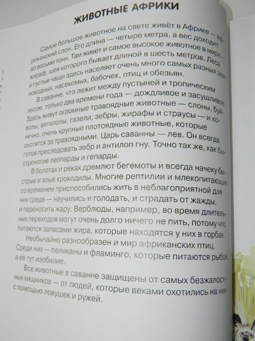 Тексты ппростые и понятные, подойдут для детей с 2 х- лет и старше (лет до 6-7). Это своего рода энциклопедия для самых маленьких, НО! написанна в виде рассказов, короткие и интересные рассказы помогут ребенку познакомиться с повадками и особенностями животных, в общем интересно получилось и ребенку интересно и самой читать приятно:), а иллюстрации Вульфа вообще практически всем детям нравятся, так что книгу не только читать но и разглядывать интересно, потом мы с сыном ещё и с помощью нашей коллекции фигурок животных, разыгрываем сценки по этой книге. Подборка животных не избитая.