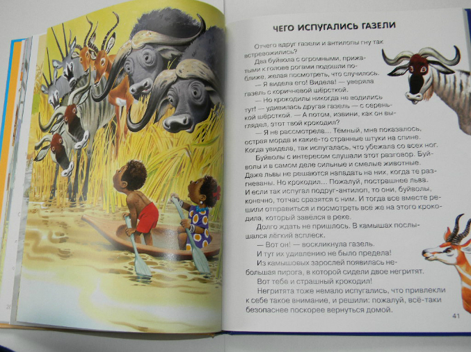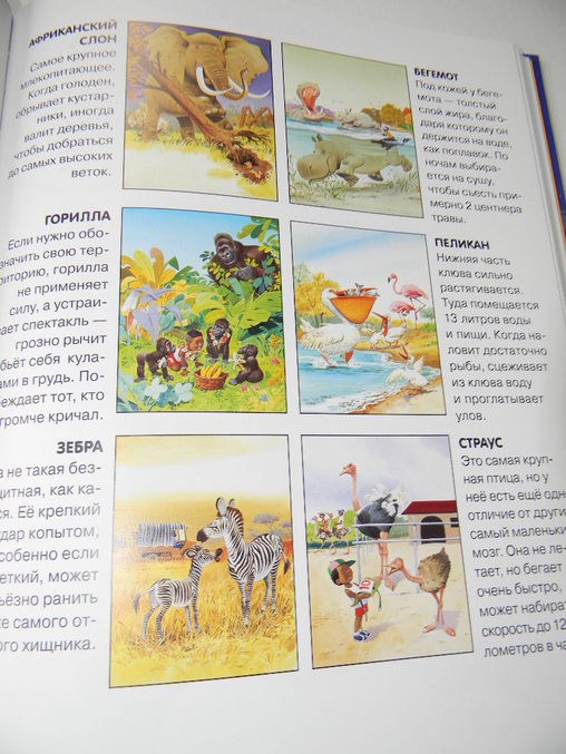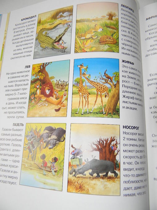 «О тех, кто живёт в Африке» (крокодил, леопард, лев, гиена, жираф, газель, носорог, слон, бегемот, горилла, пеликан, зебра, страус)