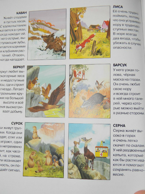 «О тех, кто живёт в Европе» (кабан, лиса, беркут, барсук, сурок, серна, олень, медведь, заяц, ёж, сенбернар).