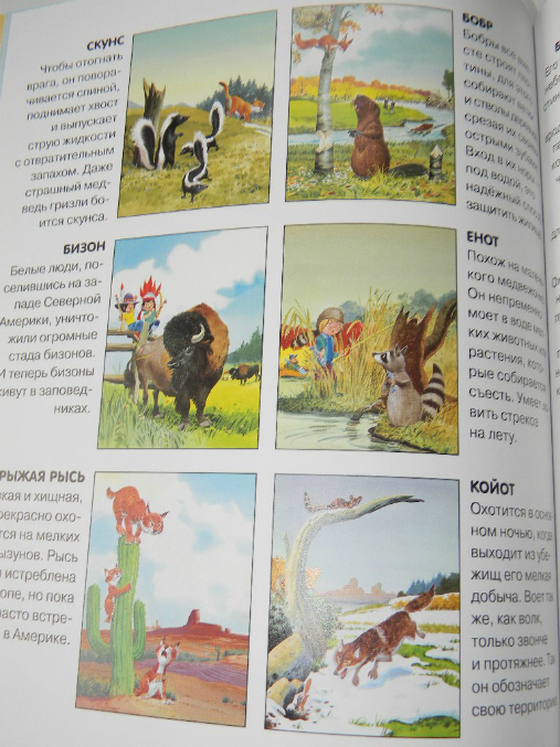 «О тех, кто живёт в Америке» (скунс, бизон, рысь, бобр, енот, койот, броненосец, опоссум, пума, ягуар, муравьед, тукан)