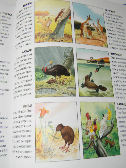 «О тех, кто живёт в Австралии» (райская птица, ехидна, сумчатая куница, сумчатая летяга, коала, атласный шалашник, динго, казуар, киви, какаду, кенгуру, утконос).