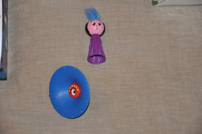 Затем нами были открыты пругунчик - вещь интересная, но для маленьких ручек туговат. Очень много надо сил приложить что бы нажать, что бы он присосался к поверхности...а пока это делается, то из ручек выскальзывает....вообщем доча приловчилась в руках его сжимать, а затем уже ставить на стол и немножко двигать, тогда он подпрыгивает. Честно, ожидала немного другой технологии. Но сам по себе приятный и качественный. фото 4.