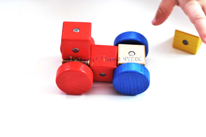 Необычный конструктор, состоящий из 11 блоков разного цвета. Половинки блоков соединены между собой шарниром, что позволяет им крутиться и принимать разные формы.