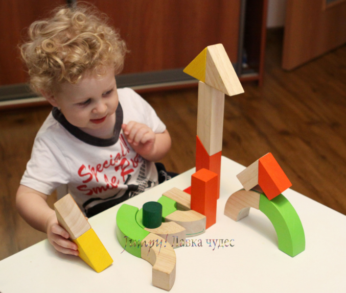 Мы можем видеть и воспринимать отдельные детали - просто набор кубиков, стоящих определенныым образом, а можем общую картину из этих деталей - здание. А наши детки этот навык приобретают со временем и с помощью тренировок и игр.