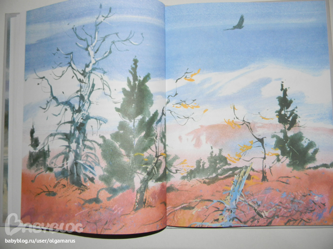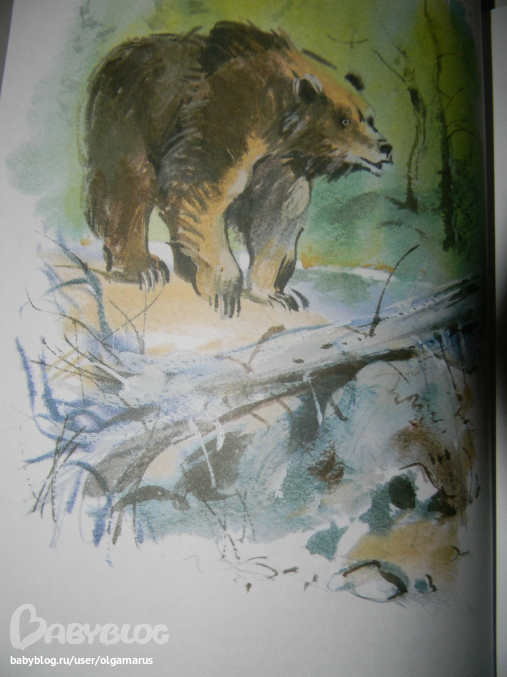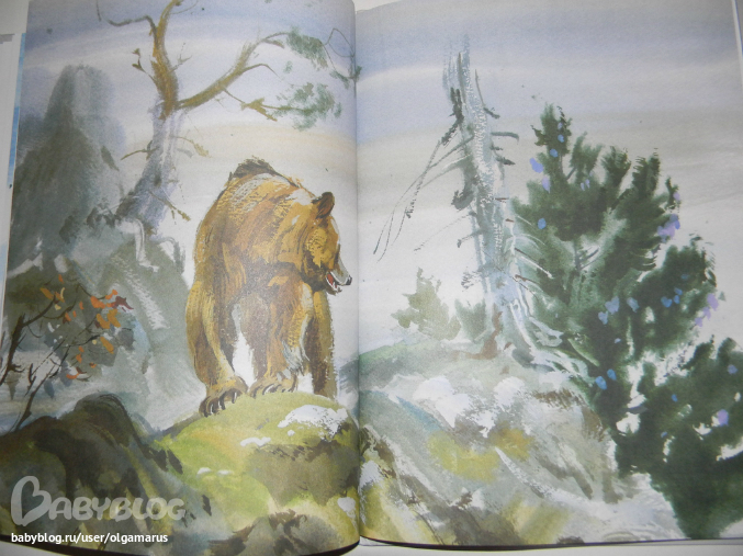 Иллюстрации в книге Дугина, великолепные, акварельные и несколько карандашных набросков, иллюстраций много, на каждой странице есть несколько и на целый разворот. Единственное что меня смутило поначалу в этой книге, что тут часть животных, как бы по точней выразится, "очеловечена" что ли, т.е. животные изображены в одежде, но по прочтению книги всё встало на свои места, рассказы отличаются, первая часть идет как бы в виде сказок и соответсвенно иллюстрации полностью подходят, а вторая половина книги это рассказы, точней два цикла рассказов первый цикл о жизни оленя( кабарги), второй цикл рассказов о волках. Так что когда будете смотреть иллюстрации не пугайтесь), всё очень гармонично и текст и иллюстрации:), книга очень интересная. Всем советую, хотя она уже наверное у всех есть:))