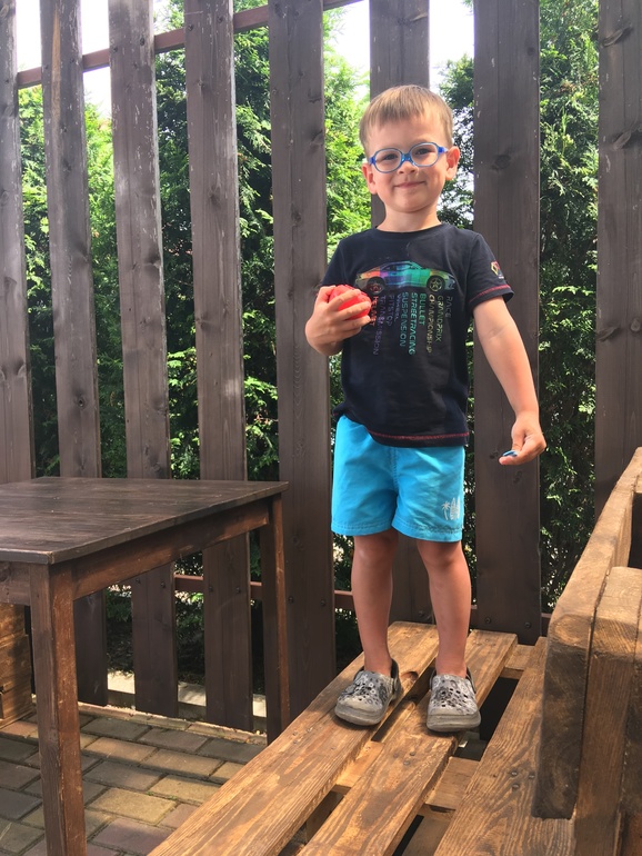 Итак, Санёчек растет и развивается как все сверстники. Ходит в садик на пол дня , больше всего там он любит физ-ру и музыку. Вообще у нас мальчик-непоседа. Сидеть на месте ему очень трудно, если бы он мог, он бы и по потолку бегал))) Так же любит разнообразные творческие занятия, лепить, резать клеить, что-то придумывать. Немного с речью притормозил, но сейчас уже наверстал и разговаривает не остановить. Учит стихи и поет любимые песенки.
