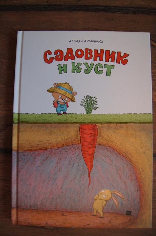 В книге даны как бы две истории, одна - о том, как у милого и трудолюбивого недотепы-садовника мишки выросло растение - странная роза, которая никак не цветет, уж он и поливает ее, удобряет, защищает от солнышка и т.д., но роза не цветет и все тут… Вторая история о мире под землей, а точнее семействе кроликов, в норке которых, в потолке, пробилась морковка, как говорится подфартило.))) И тут начинается пир горой, кролики объедаются до отвала, а мишка-садовник нечаянно потянув за хвостик, вытащил из земли уже огрызок морковки и тут его осенило, что роза какая-то неправильная, она росла бутоном в землю, а не как все «правильные» цветы. Ну и он решил, поддержать бедняжку, соорудил распорку для «цветочка» и, умаявшись, решил отдохнуть. Всю эту ситуацию наблюдает кролик, который, судя по выражению на мордочке, офигел ошалел от увиденного.