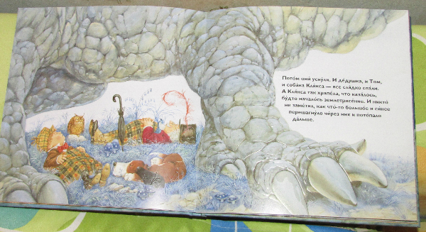 что мне НЕ понравилось (прям сильно не понравилось): книжка квадратная, а иллюстрации видимо рассчитаны на вытянутую. в общем, все сплюснуто.