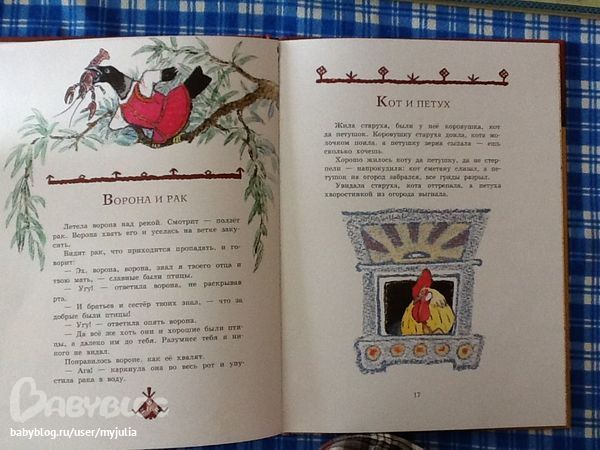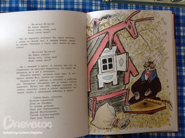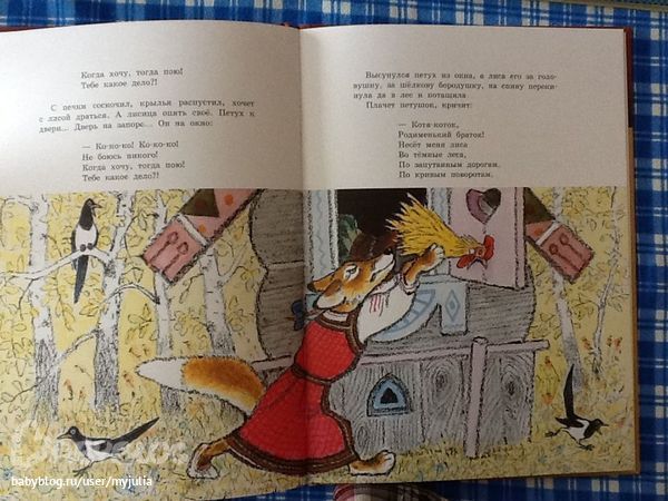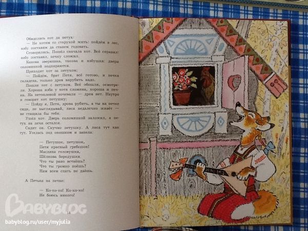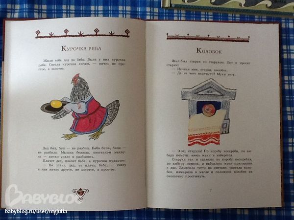Только один разворот без картинок совсем (из 14-ти полезных разворотов), на остальных либо на пол страницы картинка, как Заяц из Колобка на фотке, либо на четверть -- как Курочка Ряба на фотках выше.