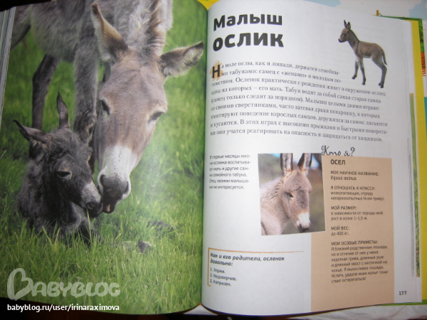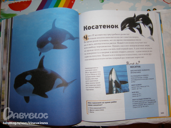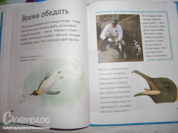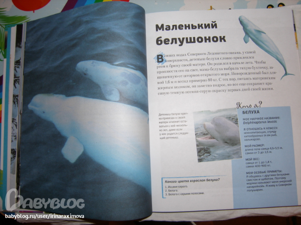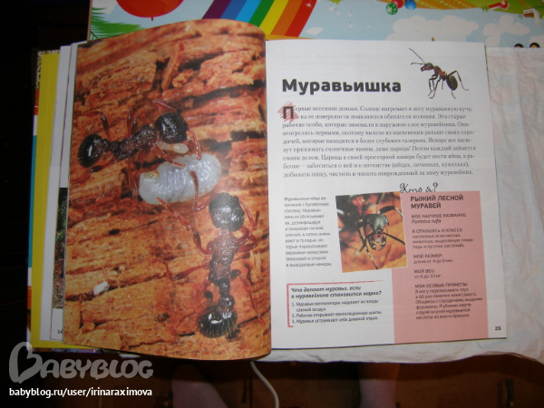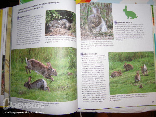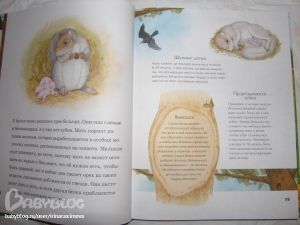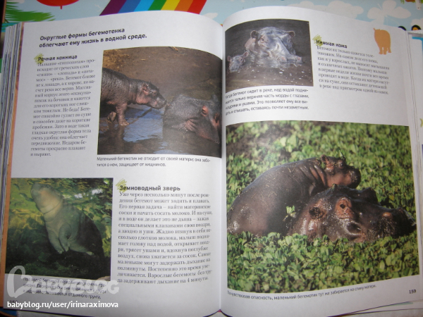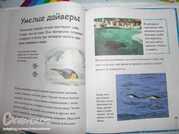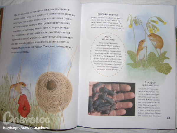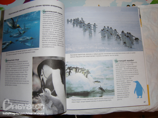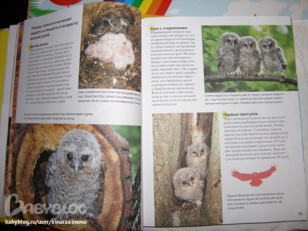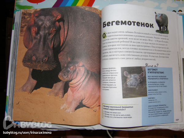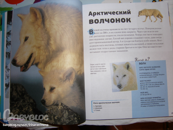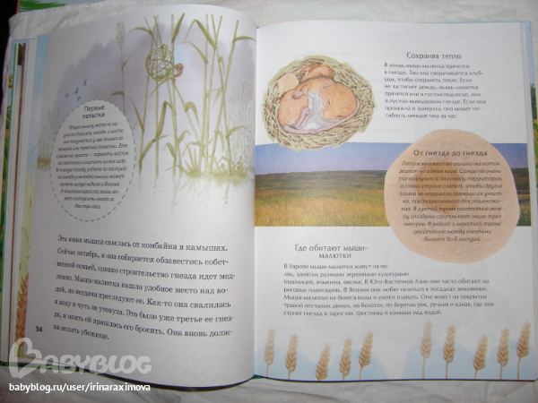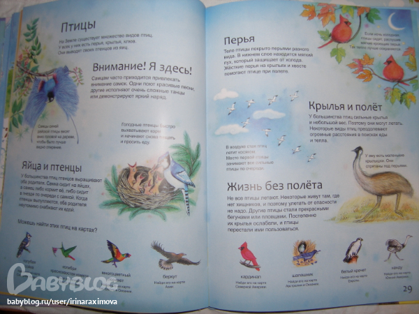 Еще одна замечательная энциклопедия, лично я от нее просто в восторге, качество точно такое же как у книжечки про зоопарк, и только сейчас заметила что подача материала похожая, но опять-таки освещено оч. мало животных. Рассказаано том кто где живет, как строит домики и выводит потомство, чем питается, как размножается, и кто для этих живностей опасен. Очень замечательная!!!!!!!