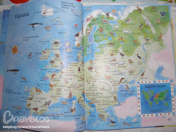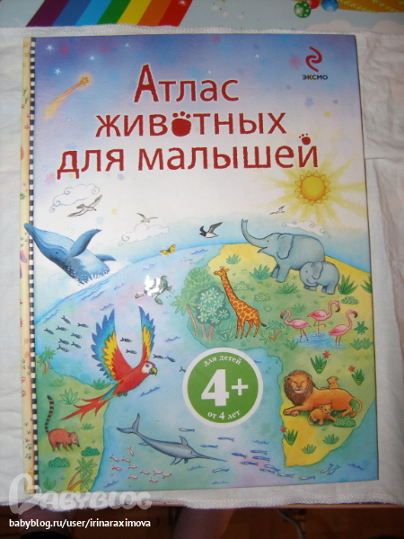 Атлас животных от Эксмо. Тоненький, бумага мелованная, брала для наглядности, чтобы ребенок знал кто и где территориально.