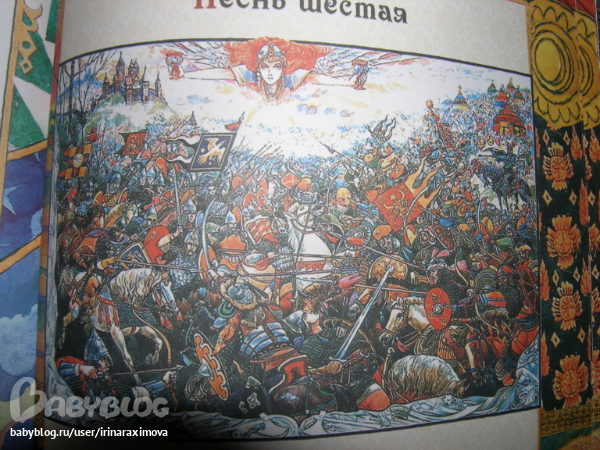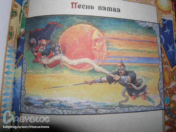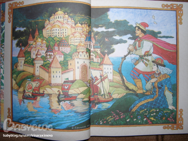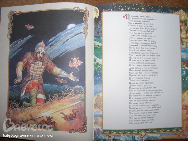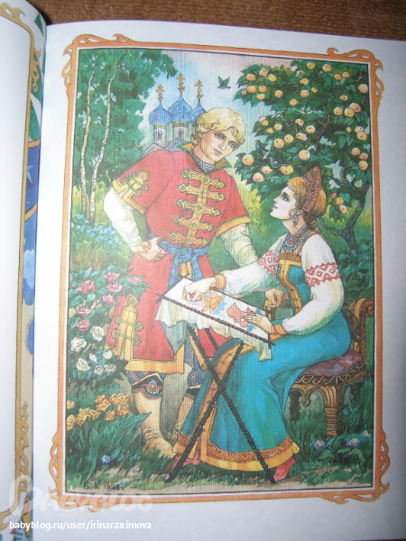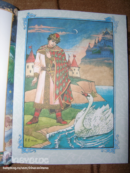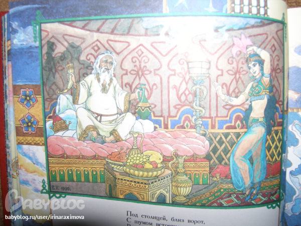 Ну и на десерт, кладезь русской поэзии А.С. Пушкин. Да-да-да, я все-таки купила это издание, несмотря на свой страх и риск. Книга потрясающая, с иллюстрациями Виктора Королькова (причем иллюстрации судя по подписям создвались несколько лет 1996-1999г. Кому-то она может показаться мрачноватой, но мне эта небольшая"готичность" в сказках Пушкина наоборот даже нравится. Хоть я и не любитель рамочек, но тут она совсем даже не раздражают (хотя можно было бы их сделать не такими "тяжелыми"). Единственное я не очень поняла то ли на некоторых иллюстрациях качеств печати не очень, то ли это холст просвечивает.
