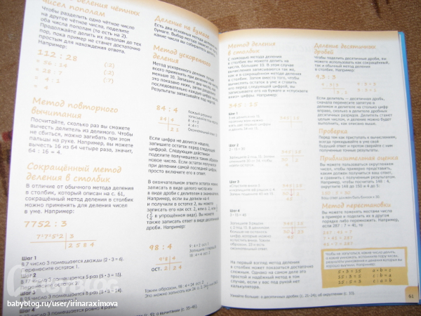 Начну пожалуй с Математики от Эксмо .... Да-да, с Математики =)) .... я понимаю что до нее нам еще как до звезды (и слава Богу), но покупала я ее в основном для себя, т.к. очень меня страшит школа, а точнее то то я с младшых классов в плане этой науки просто как в дебрях, я не знаю вообще ничего, стыдно признаваться, но это так ... поэтому в надежде что уже во взрослом возрасте я хоть что-то пойму, чтобы потом объяснить сыну, купила эту книжечку. Когда я ее открыла, то поняла что страх к данной области у меня со школьной скамьи до сих пор не прошел (а минуло 10 лет как никак) ... Книжечка размером с учебник, понапихано в нее много, довольно-таки наглядно, пока не вникала особо (страшно) .... Чувствую что она вряд ли будет последней, т.к. пока не найду с наиболее понятным и доступным изложением материала я не успокоюсь (потому что в учебниках еще моего времени, все было расписано оч. кратко, наверно рассчитано на то что ребенок это все должен знать чуть ли не с рождения) ...