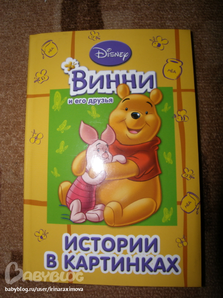 Малышка про диснеевского Винни. В книжечке 30 коротеньких историй и много иллюстраций, офсет средней плотности. Очень рада что нашла ее в Майшопе, т.к. отовсюду стали пропадать книги про диснеевского Винни, а эту днем с огнем было не отыскать.