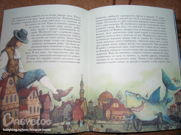 Гулливер в стране Лилипутов (ил. Симанчука). Добротное издание вормата А4 (примерно) с очень плотным офсетом и замечательными иллюстрациями. Признаюсь, в детстве Гулливера терпеть не могла, казалось нудным и скучным, но будь у меня это издание читала бы с удовольствием. Жаль что с этим художником нет второй части =( ...