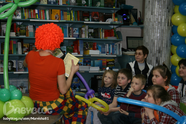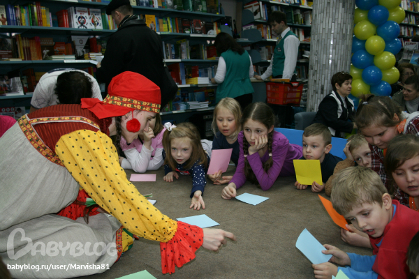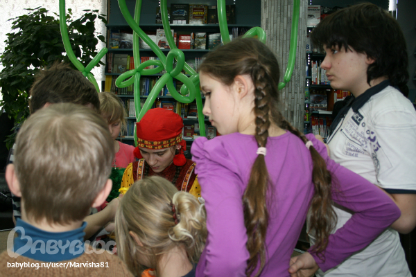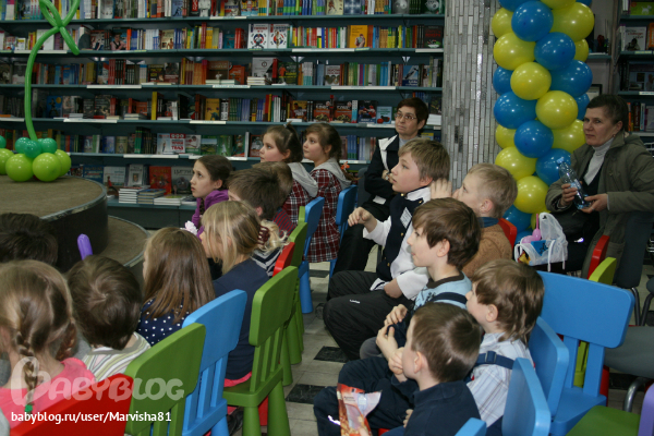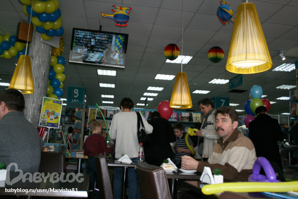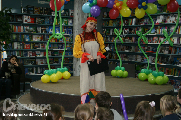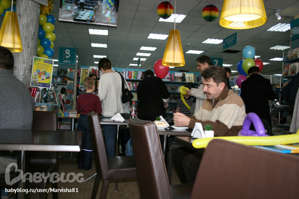 Праздник был на втором этаже рядом с Литературным кафе: от издательства "Рипол-Класик" была девушка клоун,которая задавала загадки на тему сказок и героев,а потом всем детям подарила подарки-книги: