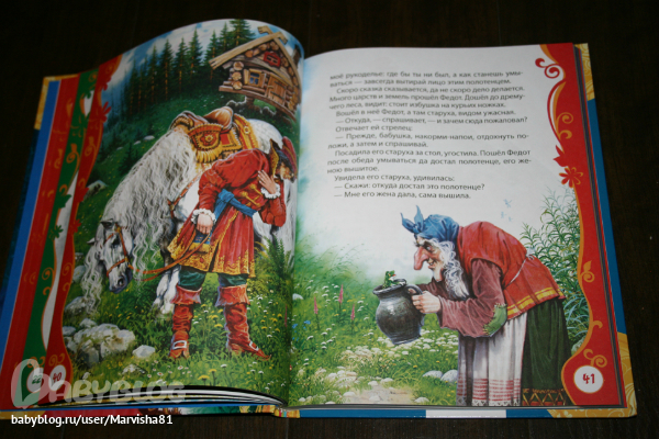 Уж сколько издано книг с русскими сказками,да и у нас хватает этих книг,но эта понравилась картинками,подборкой сказок,толщиной 140 стр. и оформлением:
