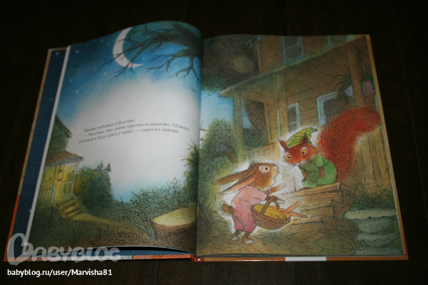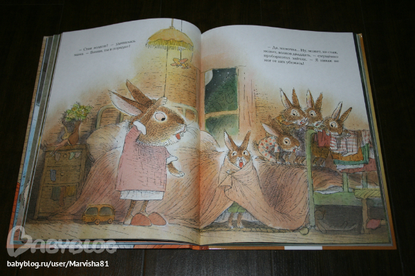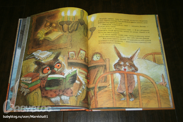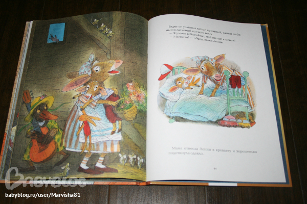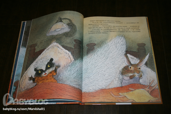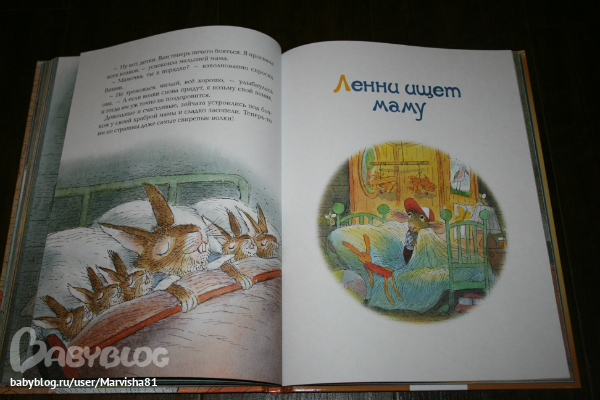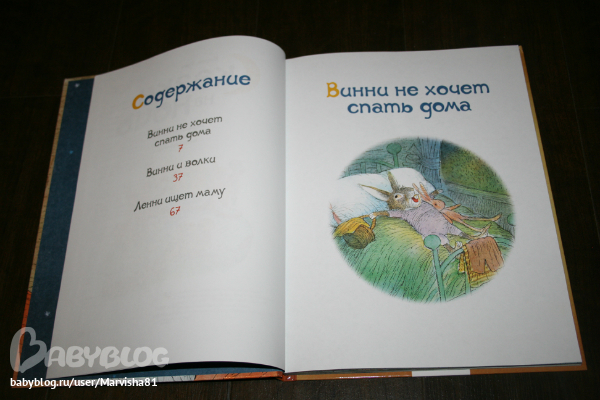 Максиму очень понравились все 3 истории: две про кролика и 1 про ягнёнка,который искал свою маму. Очень красивые иллюстрации,большие и яркие,текста не очень много,но он очень здорово написан. В первой истории кролик Винни думает,что одному ему грустно спать в своей кровати и ушёл спать к лрузьям,но понял,что самое лучшее место своя кровать :)