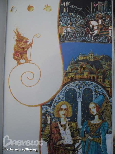 Это, собственно, иллюстрация к первой сказке "Молодой князь охотится". Эту сказку я вообще не поняла. Вот совсем-совсем. Краткий вольный пересказ. Мужик в поле пашет. Подбегает к нему волк и говорит - отдавай мула! Мужик испугался, но попросил волка разрешить ему хотя бы борозду допахать. Тот согласился. Пашет мужик и плачет. А тут лиса к нему подбегает и спрашивает, мол, в чем дело? Тот ей все рассказал. Лиса обещала помочь, если мужик ей двух курочек отдаст. Мужик согласился. Ну вот значит, лиса обхитрила волка, в следствии чего тот был мужиком зарублен. Настала пора выполнять обещание. А мужик вместо курочек в мешок собак двух посадил. Лиса мешок открыла, на нее собаки напали. Та еле ноги унесла. Сидит, значит, в своей норе и со своими частями тела разговаривает на предмет того, о чем те думали, когда их собаки грызли. Глазки и лапки мечтали поскорее дома оказаться, а вот хвост хотел, чтобы лису поймали, а его (хвост) на воротник пустили. Лиса рассердилась, вылезла из норы и дала собакам себе хвост оторвать (типо проучила, ага). Хвост ей, значится, откусили, а сама она побежала мужика ругать, что злом на добро оплатил. По дороге пустой кувшин треснутый увидела. Она на него наехала, мол, у меня горе, а ты усмехаешься. За это решила она его утопить. Надела себе на голову (????) и опустила ее в речку. Вода быстро набралась, лиса кувшин не удержала, да вместе с ним и утопла. КОНЕЦ.