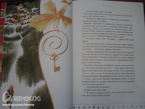 А это "Медный дедок". Вон он, на закорючке стоит, оттопыренный палец показывает. Мол, все пучком!))) И действительно, в этой сказке все пучком. Особенно порадовал момент, где с каждым новым предметом, заинтересовавшим принцессу, прозорливый герой ночевал то у ее порога, то у ее кровати, то в самой кровате. А вы говорите... Да щаз чтобы девушки в постель заманить ее надо коктейлями напоить, в бары-клубы сводить, да еще на машине дорогой покатать. А в сказке просто иметь золотое/серебряное/солнечное яблоко. Но на то она и сказка, правда?))))
