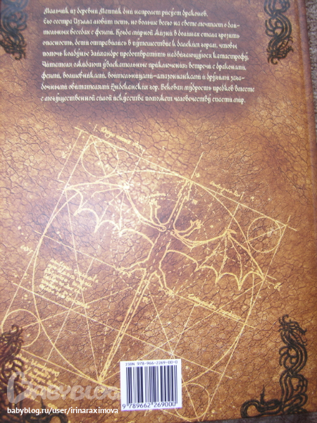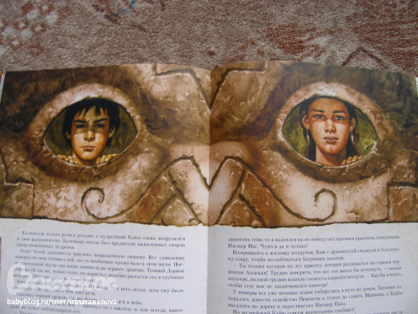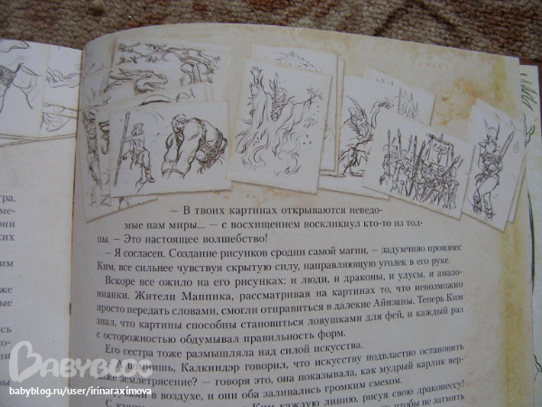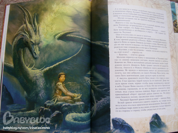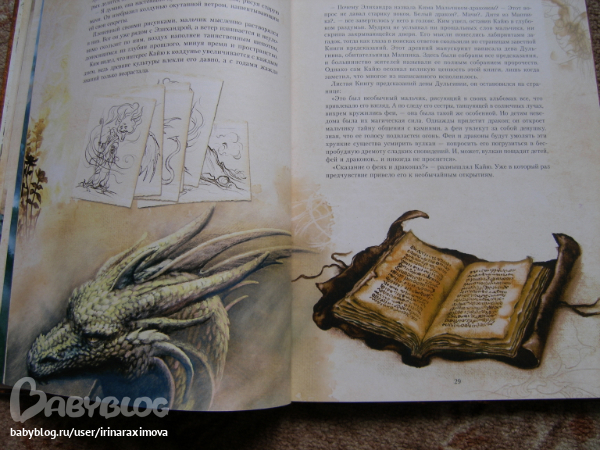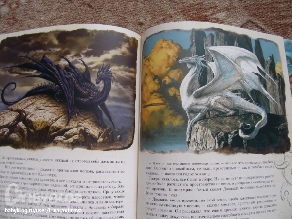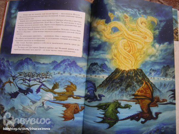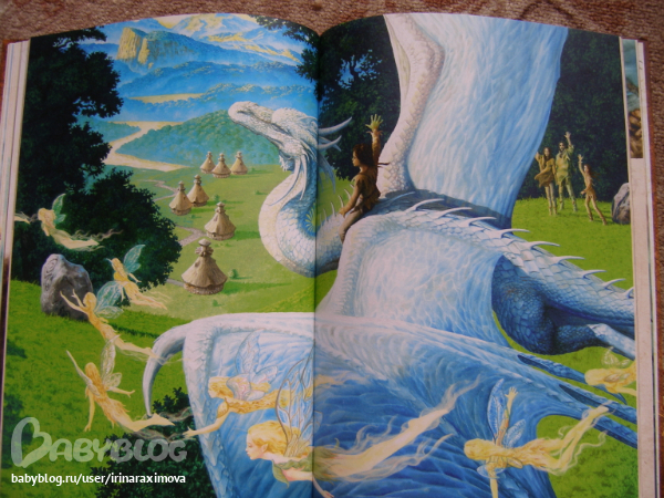 Автор и художник Сируелло Кабралл. Книжечку брала себе (хотя думаю что сынулькин станет старше и ему тоже книжечка понравится) т.к. люблю подобного рода иллюстрации (помню одно время обожала картины Валеджио) ... Как я в отзывах читала что в данном издании текст был написан именно по иллюстрациям, фантастика ... О брате и сестре которым нравились феи и драконы, и вот однажды когда мирной жизни стала грозить угроза, они отправились чтобы помочь одной колдунье предотвратить катастрофу ... (не знаю насколько он будет хороший или плохой, еще не читала) .... Мелованная бумага, тонированные страницы (причем книгу совсем не портит), некоторые иллюстрации конечно бы хотелось почетче. Матовая обложка с глянцевыми вставками ... вообщем КРАСОТА одним словом (эх, вот выпустили бы с таким же оформлением Бесконечную книгу Михаэля Энде ..эх ...) ...