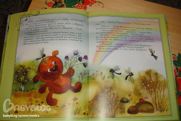 Дочка, как только я внесла стопочку в комнату, бегом с криком "чичита" к ней)))) чтобы все сфотографировать пришлось очень постараться. Пока просто полистали, Марьяше понравились "Времена года", правда великовата она оказалась, со страницами справляется с трудом. Я же в восторге от "Ежикиной радости", такие замечательные иллюстрации: теплые, весенние))) + "Книга сказок В. Сутеева" порадовала (но по отзывам другого и не ожидала)