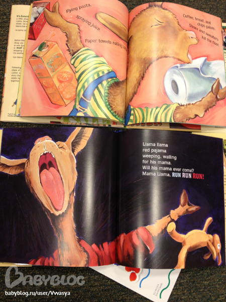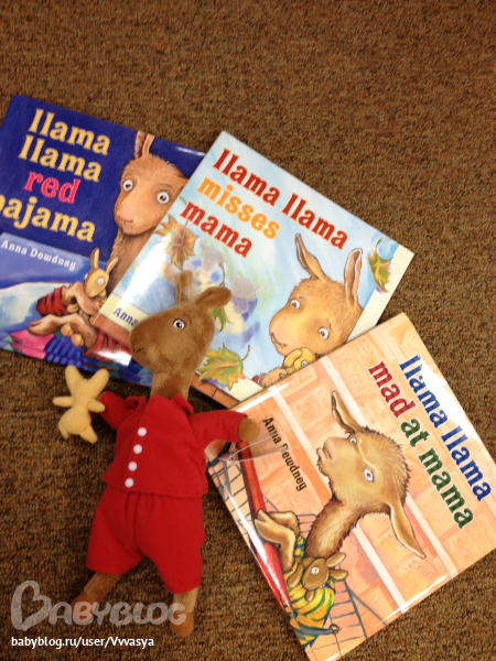 Лама Лама by Anna Dewdney - не зря ее так любят! всю зиму читали и перечитывали, и пока не прочитывали за раз все книжки, от меня не отставали (скромно замечу, я их синхронно переводила;) особенно мне нравится Misses Mama - про то как он пошел в садик и Home with Mama - про то, как заболели они с мамой.