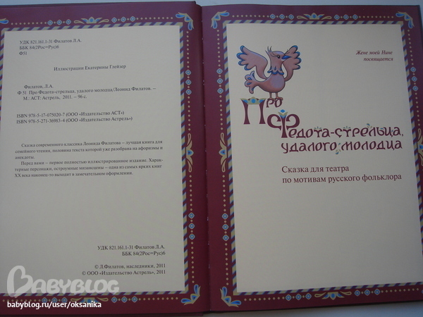 Всем! знатокам, любителям, ценителям нашего "великого и могучего", почитателям таланта Леонида Филатова - "Первое полностью иллюстрированное издание" сказки про Федота-стрельца!