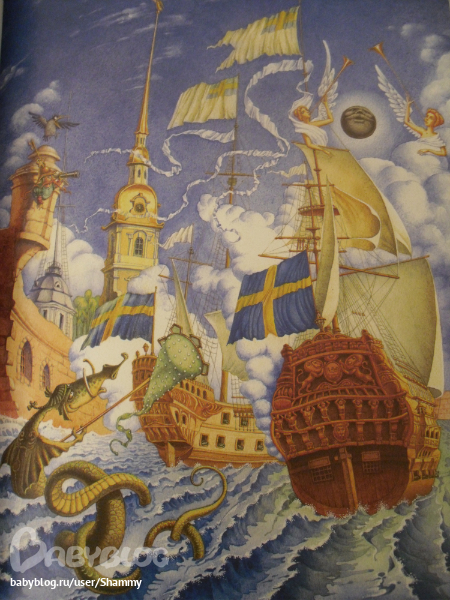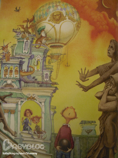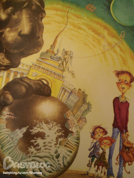 Покажу вам быстренько иллюстрации и расскажу сюжет. Как-то ночью одна из пушек Петропавловской крепости решила вспомнить моолодость. Взяла иииии как бабахнула! Ядро попало в Эрмитаж, а там... Мальчик Федя знакомится с двумя эрмитами (жителями Эрмитажа, которые заботятся о исторических ценностях и достопримечательностях Питера). Вместе с ними он пытается выяснить, что за круглая штуковина закатилась в Эрмитаж. Путешествую от одной питерской достопримечательности к другой и пытаясь везде это ядро пристроить, Федя знакомится не только с семейством эрмитов, но и с историей города. В пути их подстеригает змей, который пытается ядро отобрать... Хорошая сказка на фоне прекрасного города. Лично я люблю Питер и после прочтения книги взглянула на него с другой стороны - сказочной, волшебной... Я думаю, плюс этой книги еще в том, что можно подготовить ребенка к путешествию и к экскурссиям. Сказать - пойдем в гости к эрмитам!)))