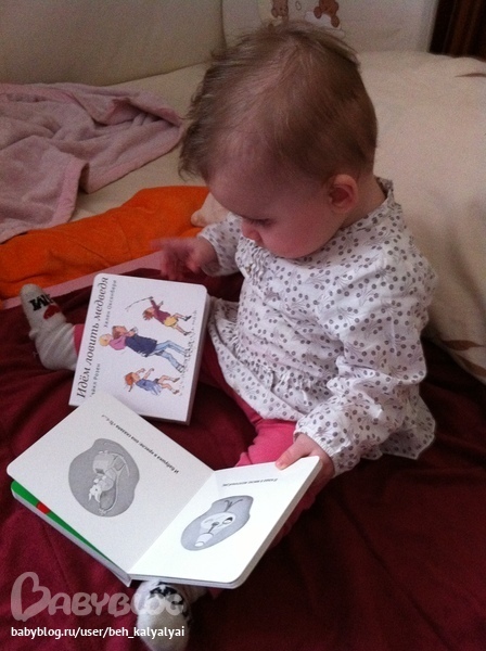 "Идем ловить медведя" мы читаем (поем) с мужем на манер автора, с плясками, ужимками, звуками и прыжками. Аситруля смеется и хлопает в ладоши! Прекрасная книга и заразительный мотив, пою целыми днями!))