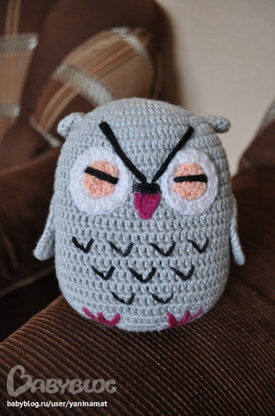 Но самое приятное - это сова, которую Маша сама связала! Такая классная, такая мягкая)))) Витя ее затискал просто, да и можно сколько угодно тыкать в ее огромные глазки и ничего тебе за это не будет (сова крепко спит и ничего не чувствует), ибо если попросить Витю показать на живом человеке глаза, то этот подопотный рискует оказаться без оных))))) Про сову Вите рассказываю так - пока мы бодорствуем сова спит, глазки закрыты, а когда Витя засыпает, сова открывает глазки и охраняет его сон =)))
